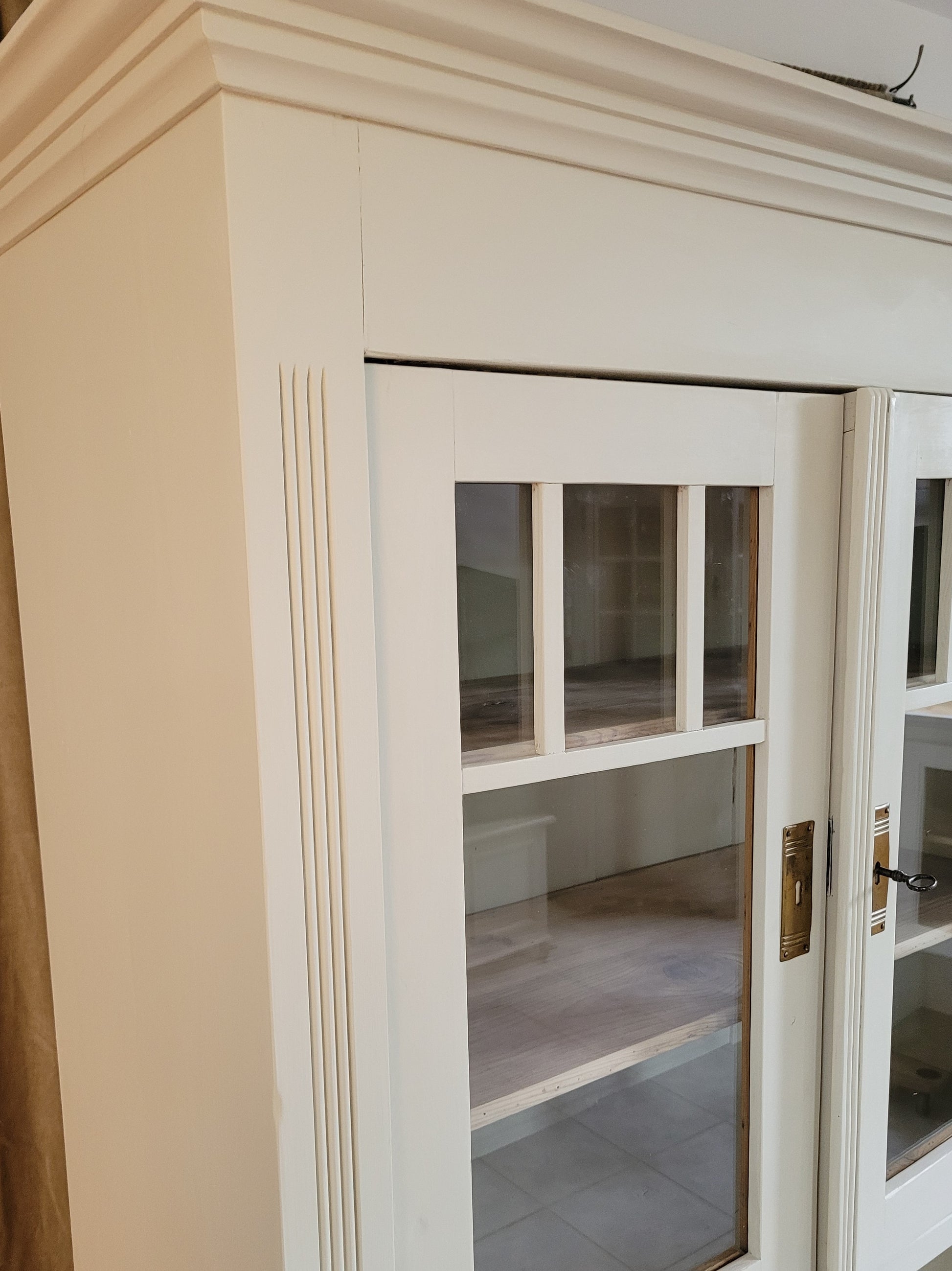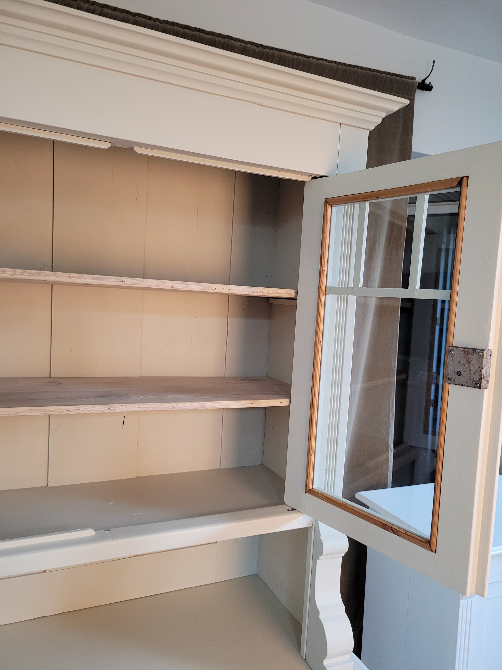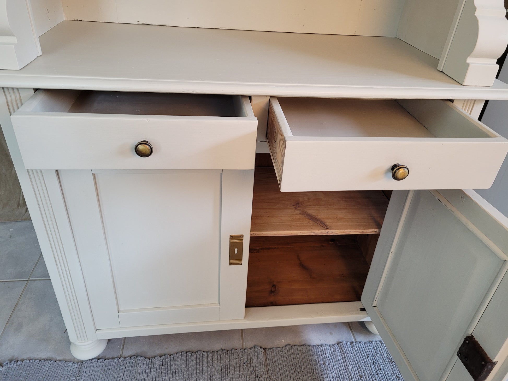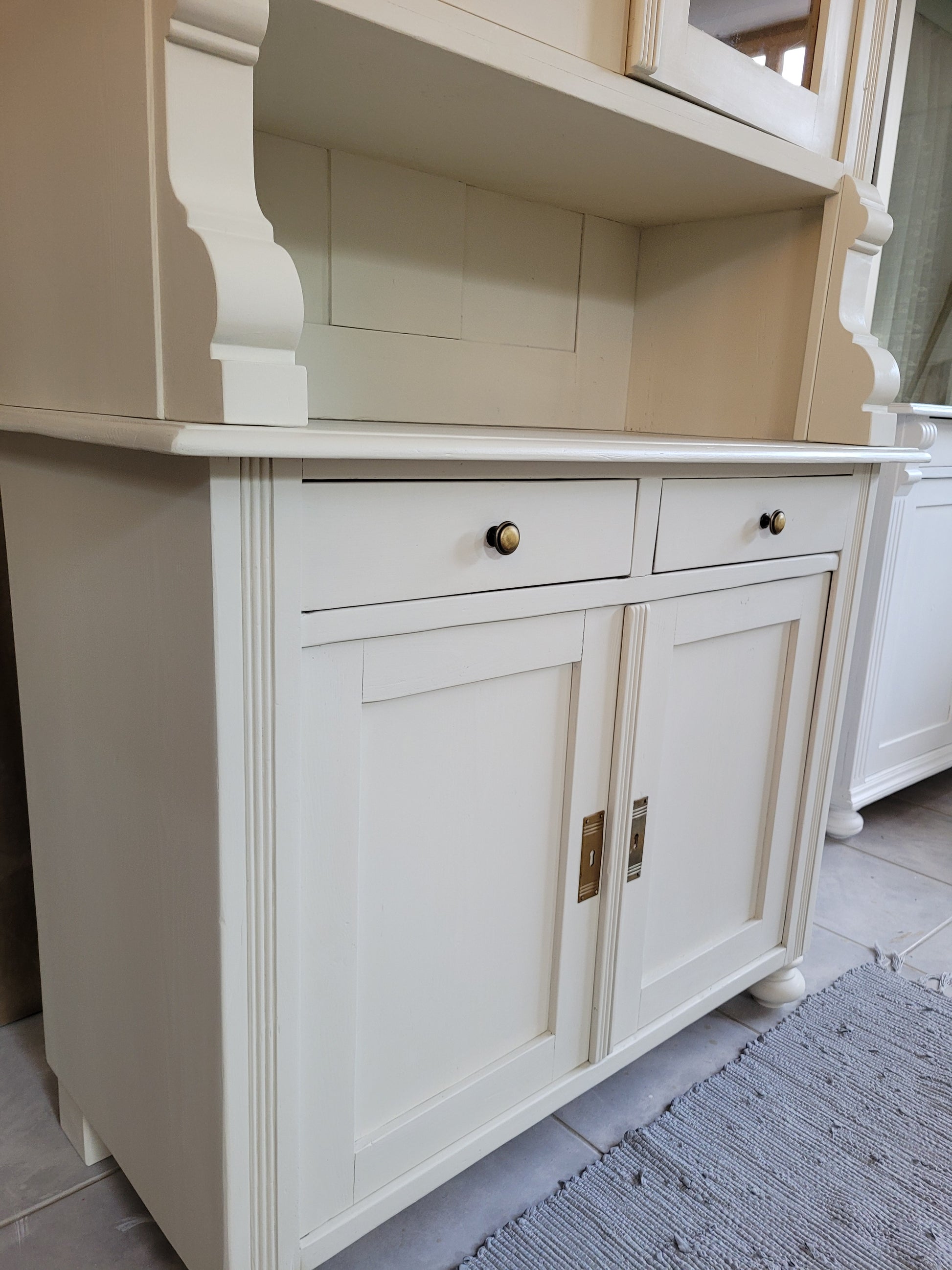 • Korpus und Schrankinneres oben mit hochwertiger matter Kreidefarbe komplett neu gestaltet