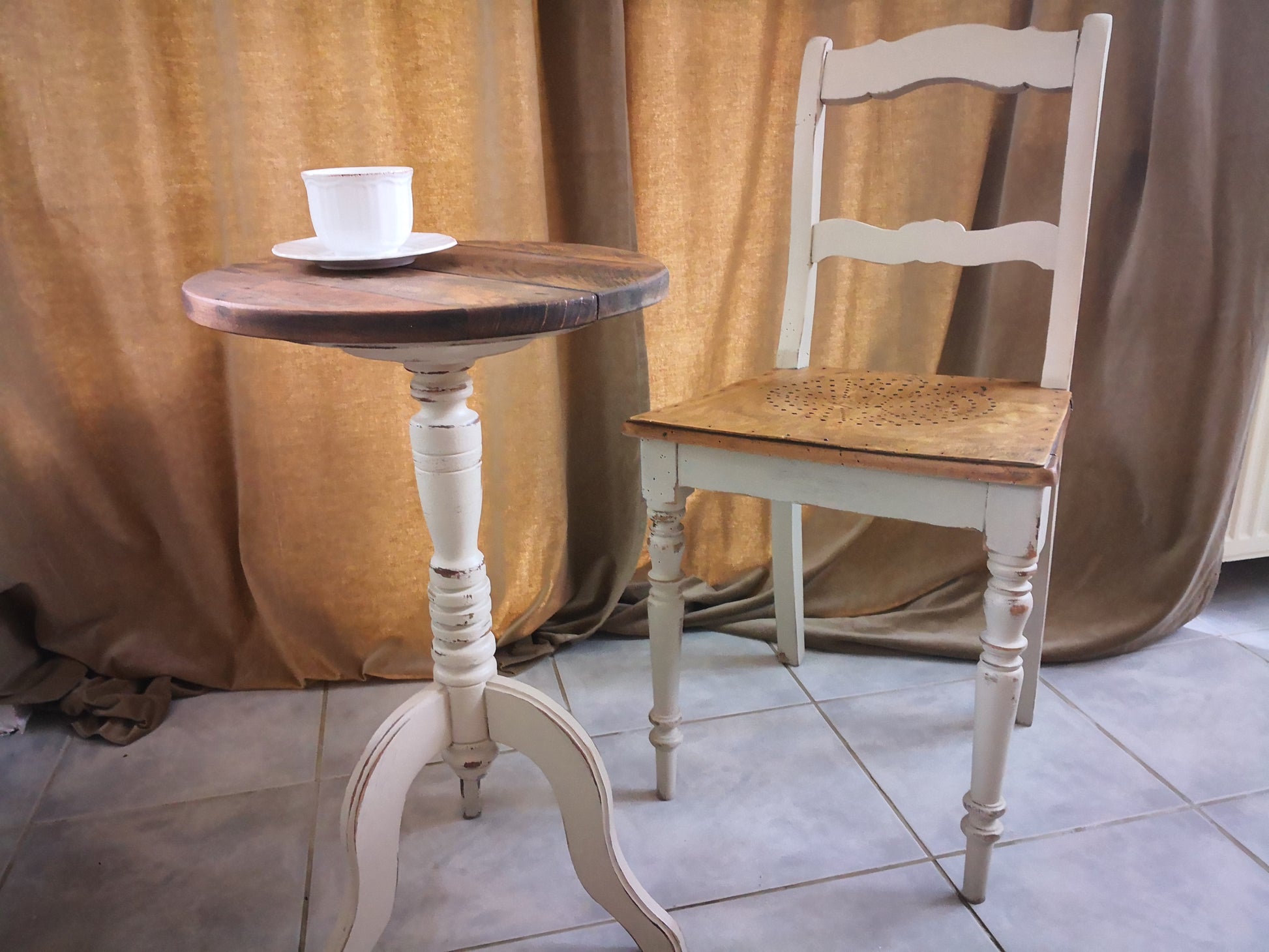 Hier möchten wir Euch diesen neu gestylten antiken Tisch im shabby Look anbieten.