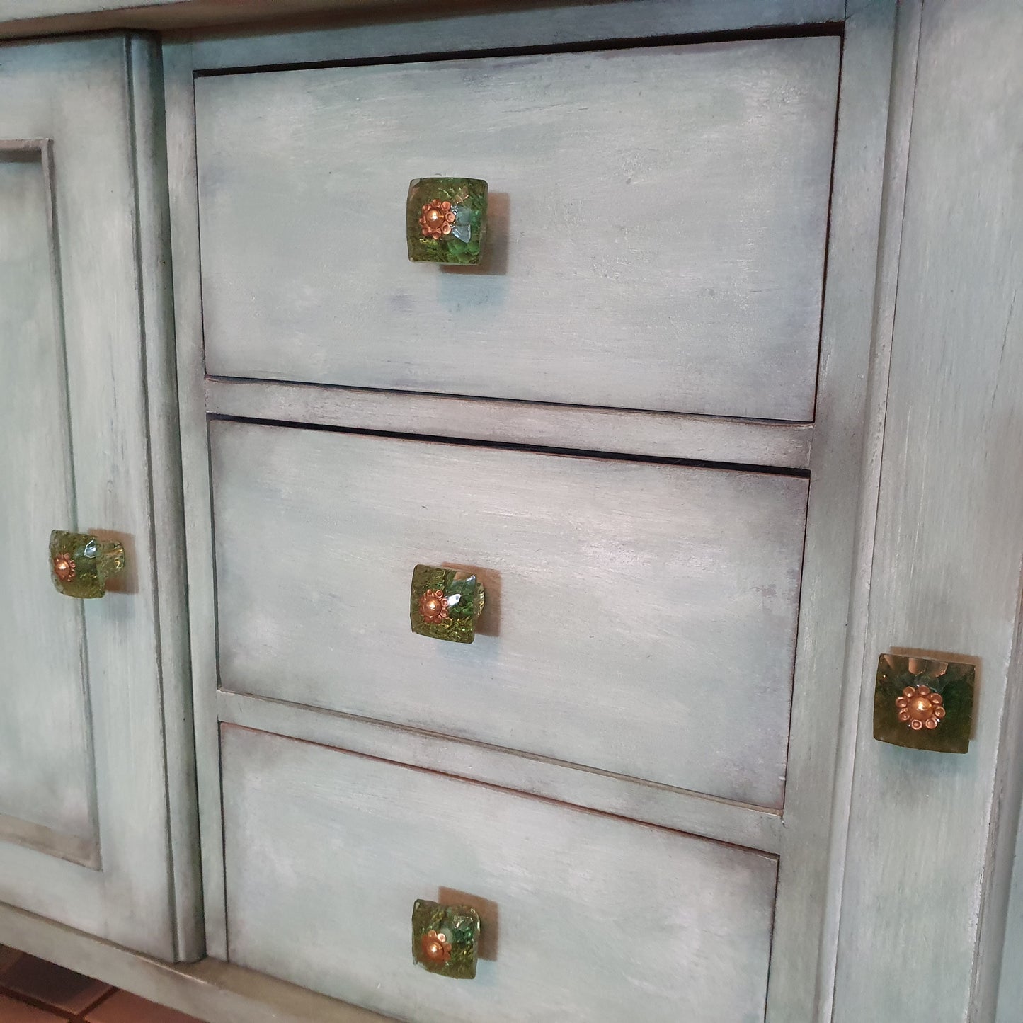 Und dann erst die Griffe - der absolute Knaller! Vintagegreen, Glas, Messing- echt prächtig!