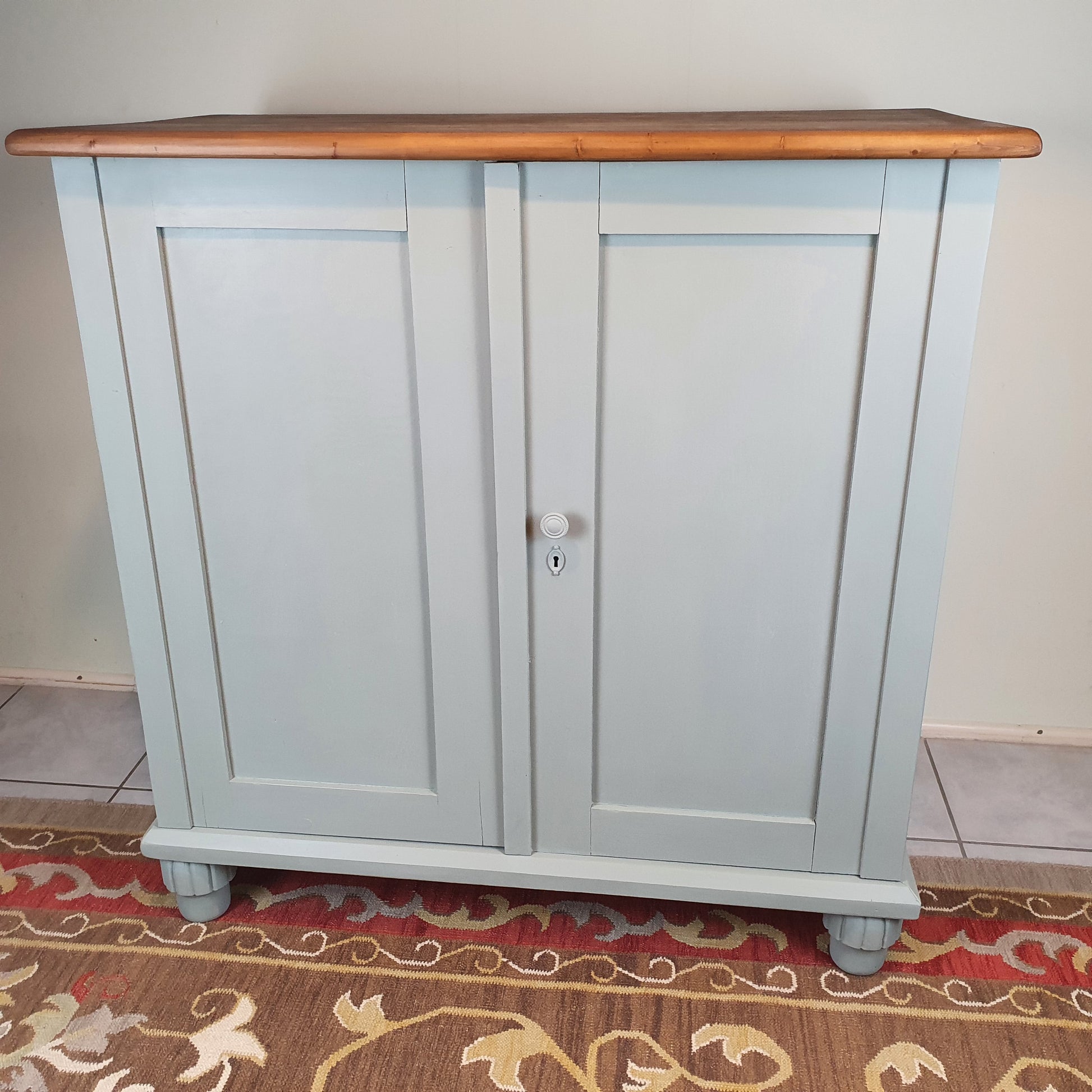 Aufwändigst gereingt, geschliffen, dann individuell in Handarbeit umgestaltet mit hochwertiger Kreidefarbe und doppelt gewachst, um die Oberflächen haltbarer zu machen.