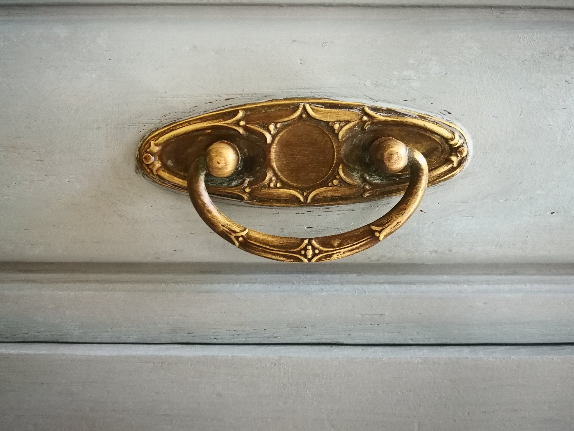Individuell in Handarbeit umgestaltet, mit hochwertiger Kreidefarben (pure & original) Ton in Ton gestrichen. Das Finish mit klarem und grauem Wachs, bringt tolle Akzente.