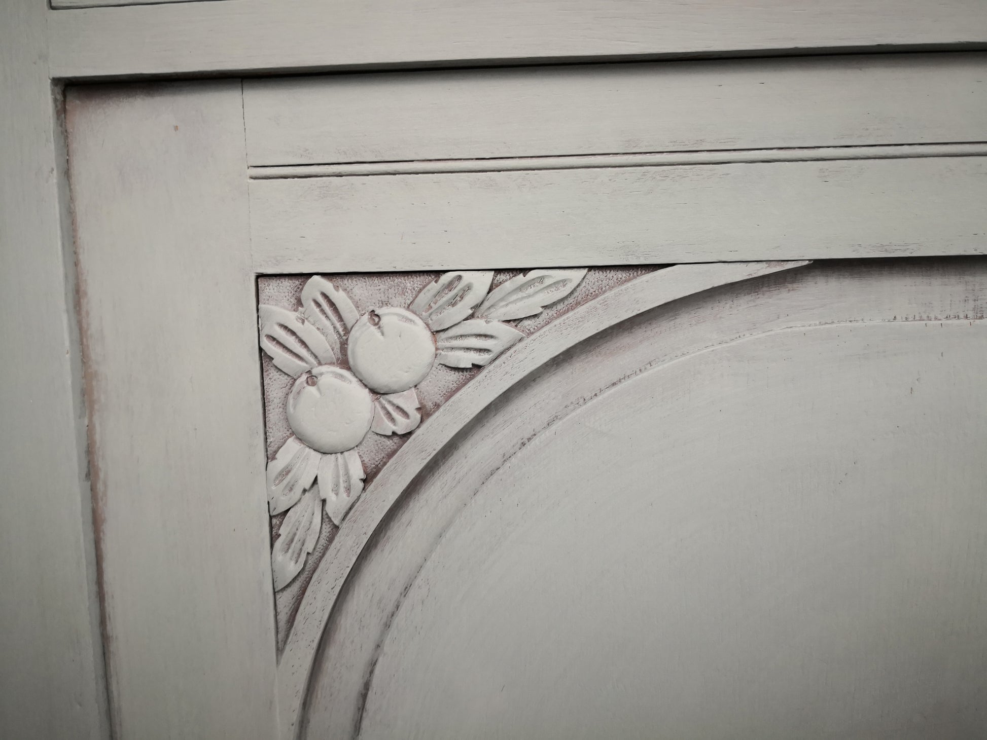 Individuell in Handarbeit umgestaltet, mit hochwertiger Kreidefarben (pure & original) Ton in Ton gestrichen. Das Finish mit klarem Wachs, so wird die Oberfläche beständiger.